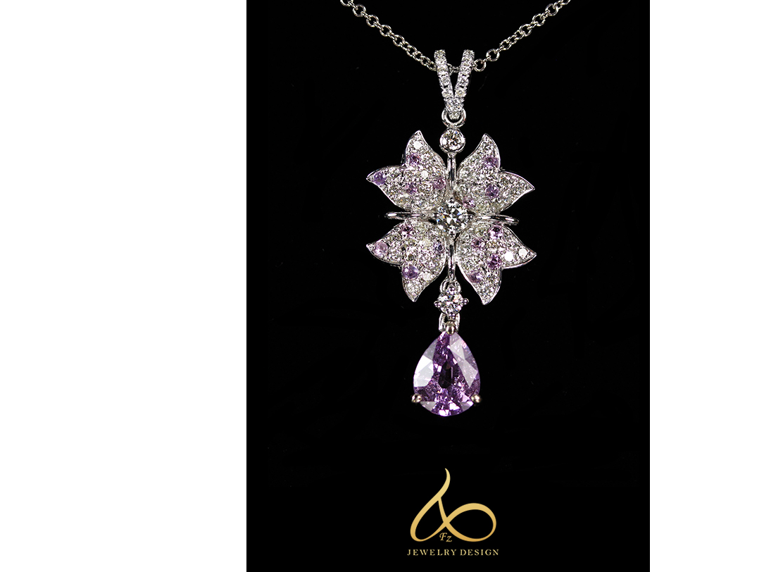 水滴紫色剛玉 1.51ct、小鑽 59P 0.45ct、白鑽 1P 0.1ct、紫剛 15P 0.16ct