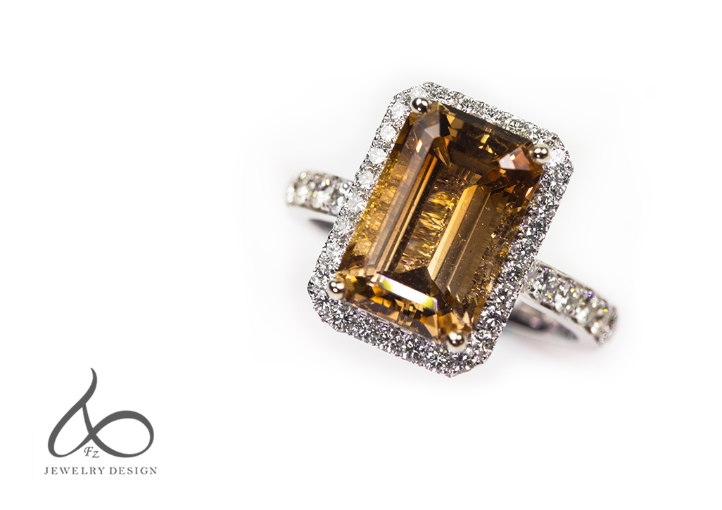 香檳雙色碧璽(Tourmaline)10.96ct、小鑽 58p 0.30ct(寶石底碗鑲滿碎鑽)